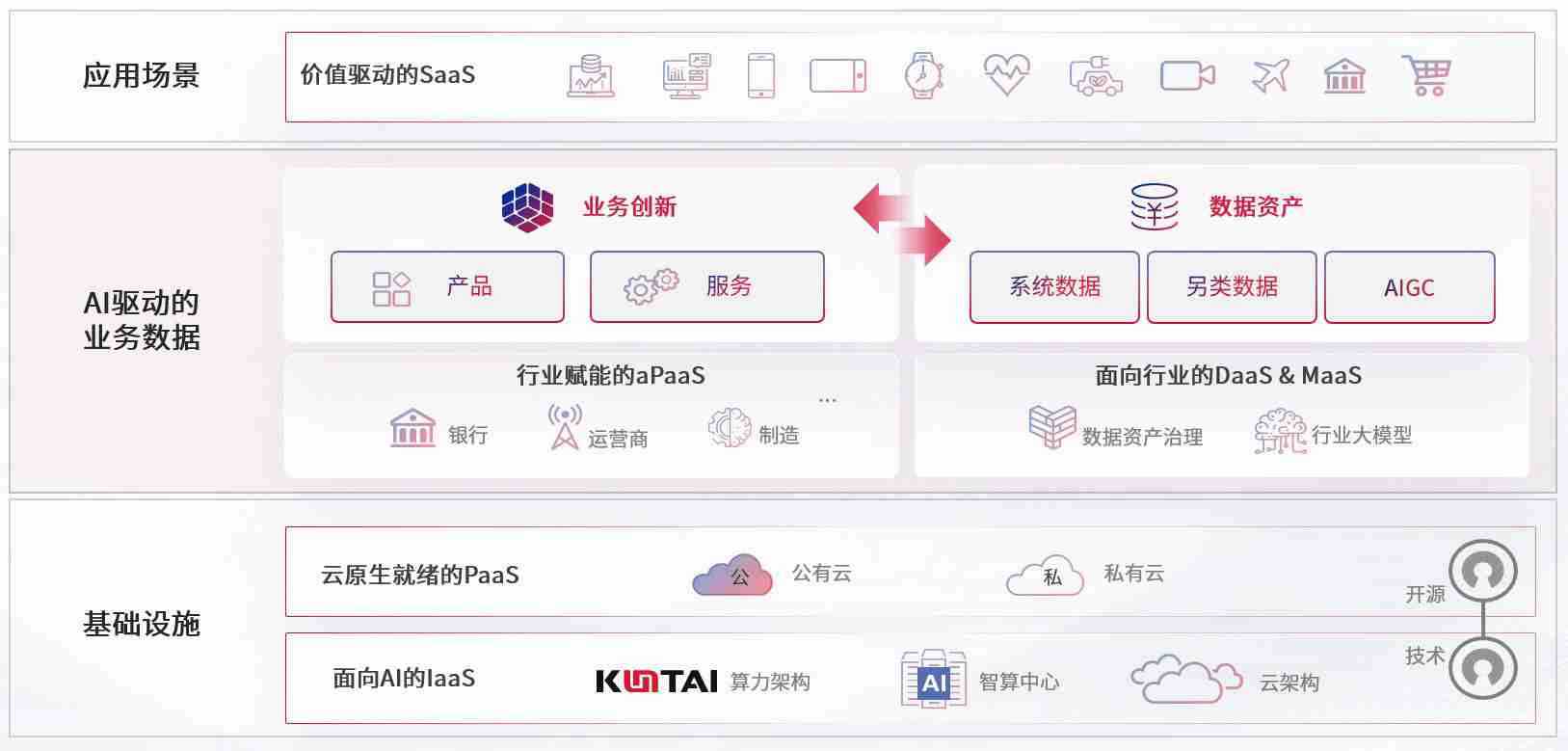 数字时代,,,围绕企业数字化转型的关键要素,,,,人生就是搏数码开创性的提出数云融合战略和技术体系框架,,,,着力在云原生、、、、数字原生、、、、AI原生和信创产业上架构产品和服务能力,,为处在不同数字化转型阶段的快消零售、、汽车、、、金融、、医疗、、、政企、、、教育、、、、运营商等行业客户提供泛在的敏捷IT能力和融合的数据驱动能力,,,,构建跨界融合创新的数字业务场景和新业务模式,,助力企业级客户建立面向未来的核心能力和竞争优势,,,,全面推动社会的数字化、、智能化转型升级。。。